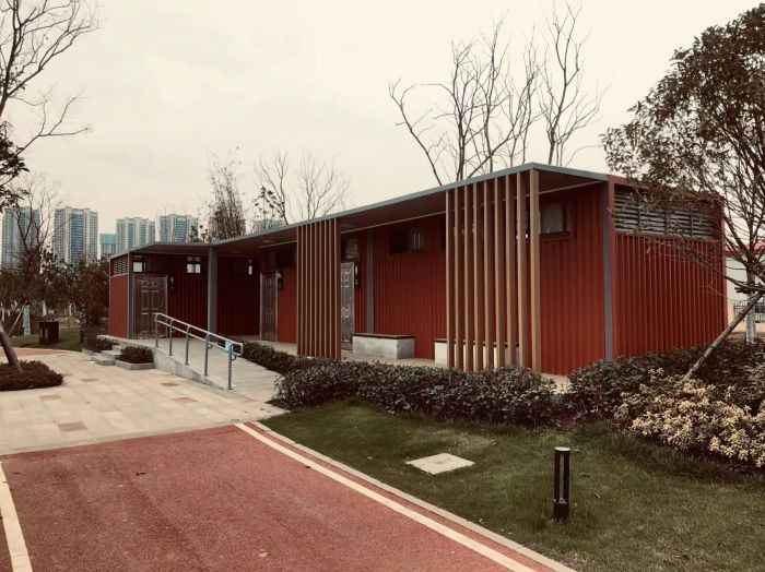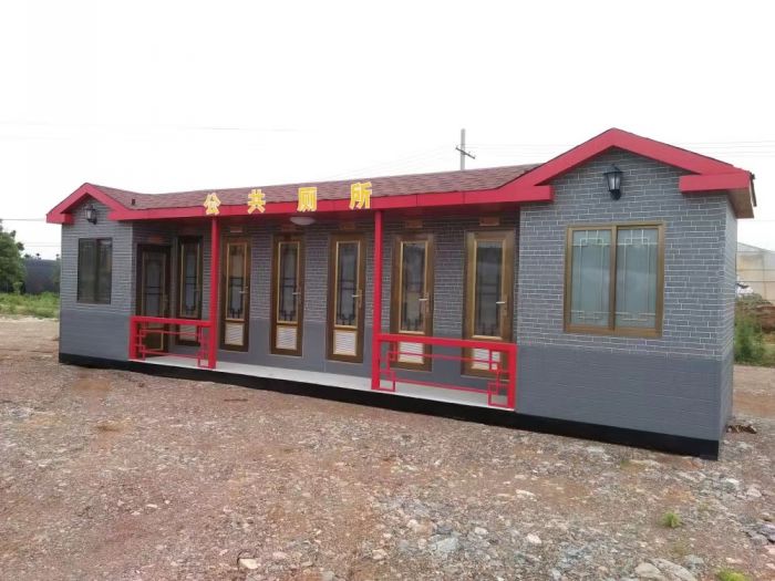 拼裝廁所;在廠里做好各個(gè)廁所部件,再到現(xiàn)場組裝在一齊,適合不易運(yùn)輸?shù)拇笮蛶_@座箱式廁所,女廁5個(gè)蹲位內(nèi)配工具間,男廁2個(gè)蹲位+2小便斗,第三衛(wèi)生間由殘疾馬桶、助力洗手盆和兒童馬桶、兒童洗手盆外加?jì)雰号_(tái)等設(shè)施。廁所前后有窗,通風(fēng)采光,前部走廊裝有屋檐,防雨防曬。此廁所位于公路綠道邊,整體大氣,功能齊全,造型美觀,是一道難得的靚麗景觀!